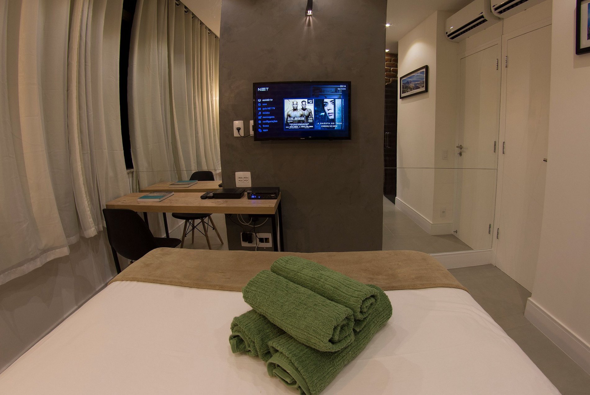 Apartamento inspirado no conceito Loft boutique. Moderníssimo e funcional! 100% climatizado - Ar Condicionado Split Tecnologia Inverter, em todos os ambientes! O projeto e a decoração tem a assinatura do renomado escritório - AF Arquitetura - premiado inúmeras vezes Casa Cor. Luxo, Conforto e Requinte. De um lado vista para o mar e de outro vista montanha. 100 metros da praia de Copacabana e 150 metros da Praia do Leme. Acomoda até 04 pessoas (02 casais) 01 vaga de garagem no próprio edifício. Projeto executado por Arquiteto premiado. Acomoda 02 casais ou 1 casal com 02 filhos. Requinte, conforto e ótima localização. Prédio residencial com portaria 24h. O apartamento fica no 8º andar. Localização - frente. Sala com sofá-cama de casal e ventilador de teto e Ar condicionado Split Inverter 12.000 btus com controle remoto. 01 quarto com cama de casal padrão, armário e ar condicionado Split Inverter 12.000 btus com controle remoto. Cozinha americana com todos os utensílios além de: Forno micro-ondas, frigobar, sanduicheira, cafeteira, cooktop de 2 bocas e coifa. Banheiro com box blindex, chuveiro elétrico e bancada com cuba de sobrepor. Apartamento privativo em prédio residencial. Meu apartamento conta com 01 vaga de garagem. O apartamento tem toda a estrutura, conforto, privacidade e segurança necessárias para uma ótima estadia! Eu tenho uma adorável funcionária que nos ajuda com check-in, check-out e interação com os hóspedes durante toda estadia. O que falar de Copacabana!?!? Bairro cantado em verso e prosa. Em cada rua você encontra bares famosos, o calçadão mais famoso do mundo, quiosques, restaurantes, padarias, lavanderias, locadoras de veículos, bancos e é claro: A princesinha do Mar - Copacabana. Cartão Postal do Rio!!!! Transporte publico e taxi na porta do prédio. 01 vaga de garagem. Distâncias dos principais pontos do R.J: 100 metros da praia mais famosa do mundo Copacabana e a 150 metros da praia do Leme; 50 metros do Bar/Restaurante Cervantes 900 metros do Shopping RIO SUL; 900 metros Copacabana Palace 3 Km do Aterro do Flamengo; 3,5 Km do Morro do Pão de Acúcar; 4 Km da praia de Ipanema; 7 Km da Lapa; 7,5 Km da Marquês de Sapucaí; 8 Km do Aeroporto Santos Dumont; 8,5 Km do acesso ao Cristo Redentor; 9 Km da Rodoviária Novo Rio; 11 km da Ponte Rio Niterói; 24 Km do Aeroporto Internacional do Galeão 100 metros da praia mais famosa do mundo Copacabana e a 150 metros da praia do Leme; 50 metros do Bar/Restaurante Cervantes 900 metros do Shopping RIO SUL; 900 metros Copacabana Palace 3 Km do Aterro do Flamengo; 3,5 Km do Morro do Pão de Acúcar; 4 Km da praia de Ipanema; 7 Km da Lapa; 7,5 Km da Marquês de Sapucaí; 8 Km do Aeroporto Santos Dumont; 8,5 Km do acesso ao Cristo Redentor; 9 Km da Rodoviária Novo Rio; 11 km da Ponte Rio Niterói; 24 Km do Aeroporto Internacional do Galeão